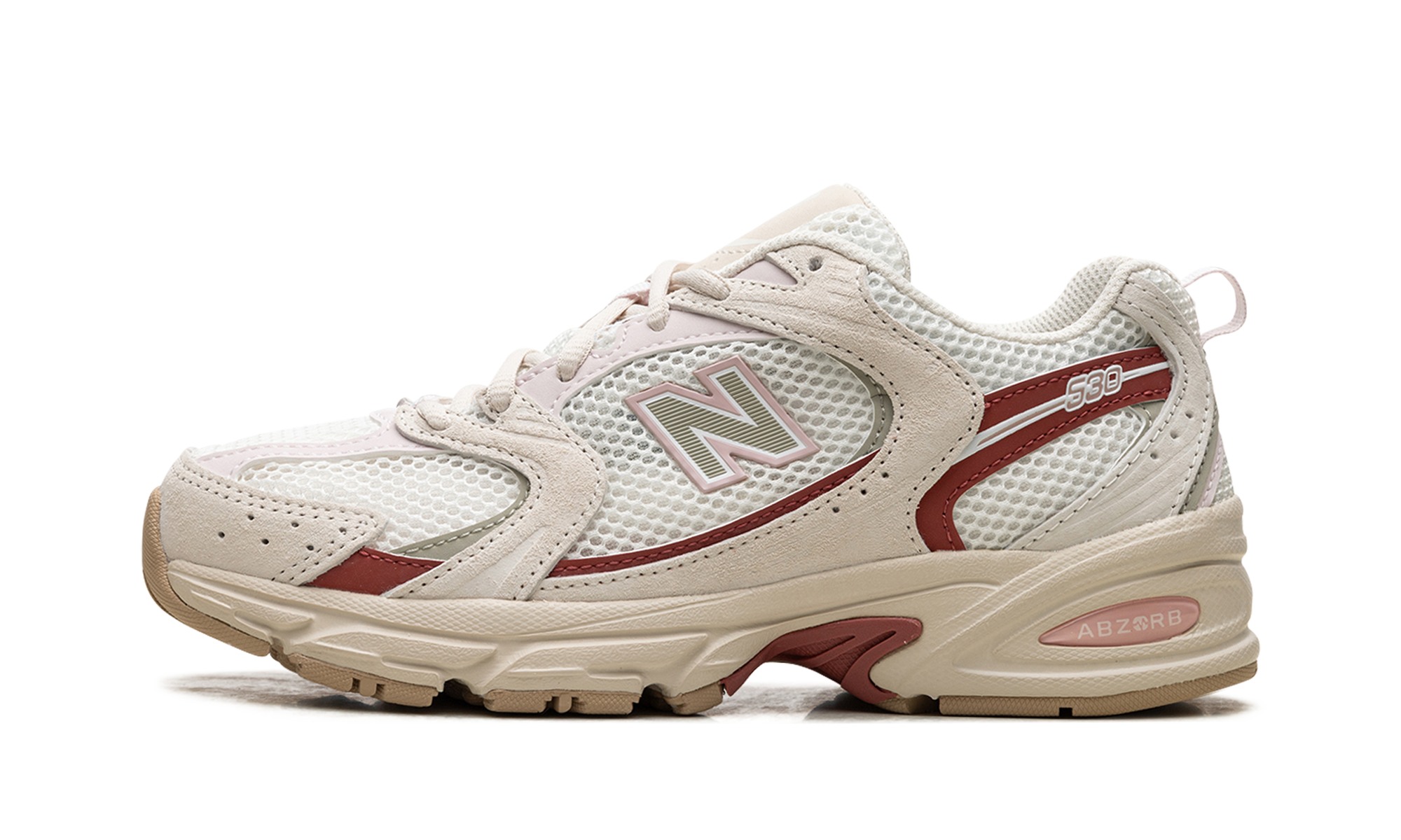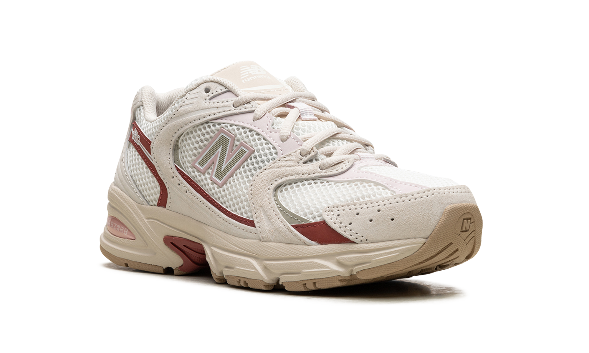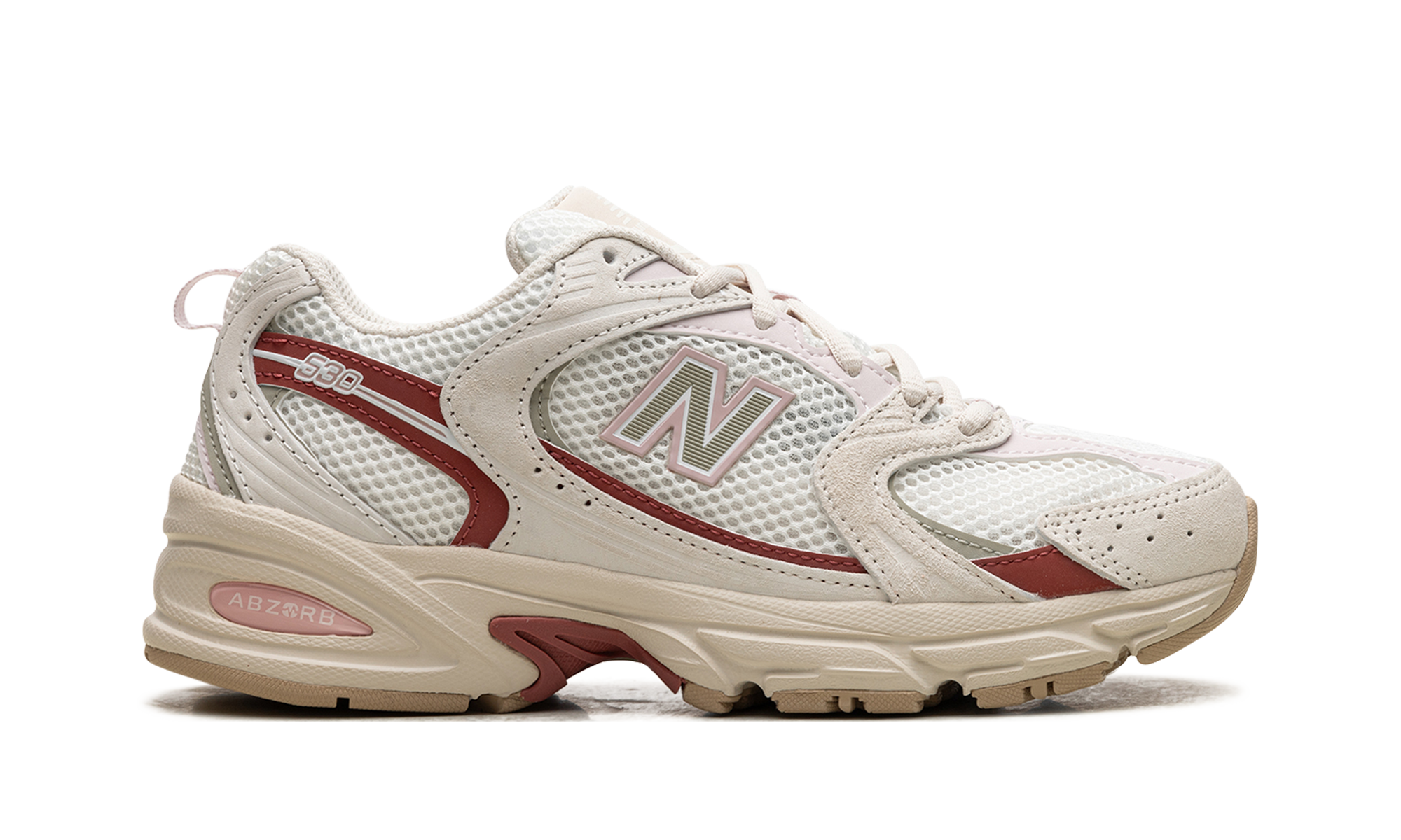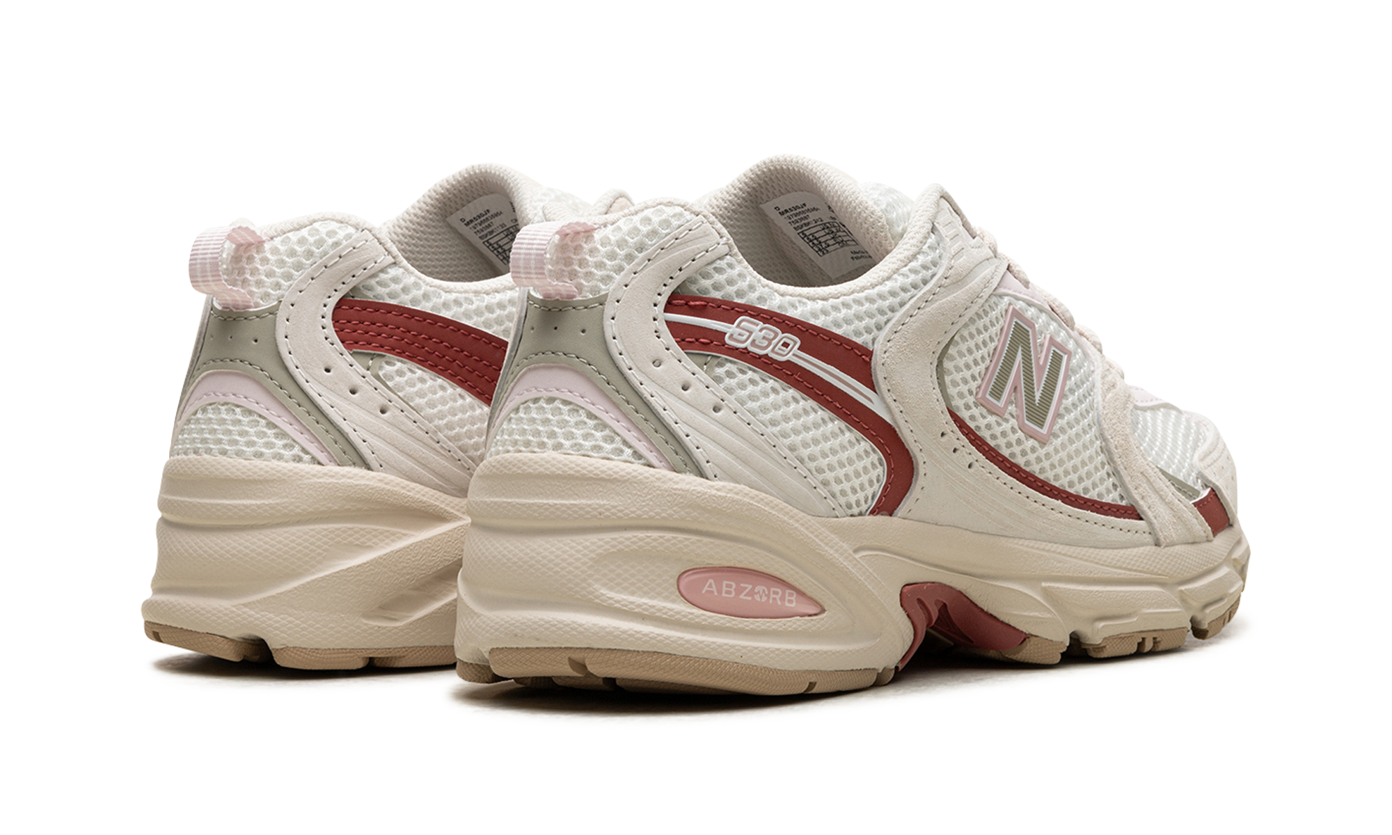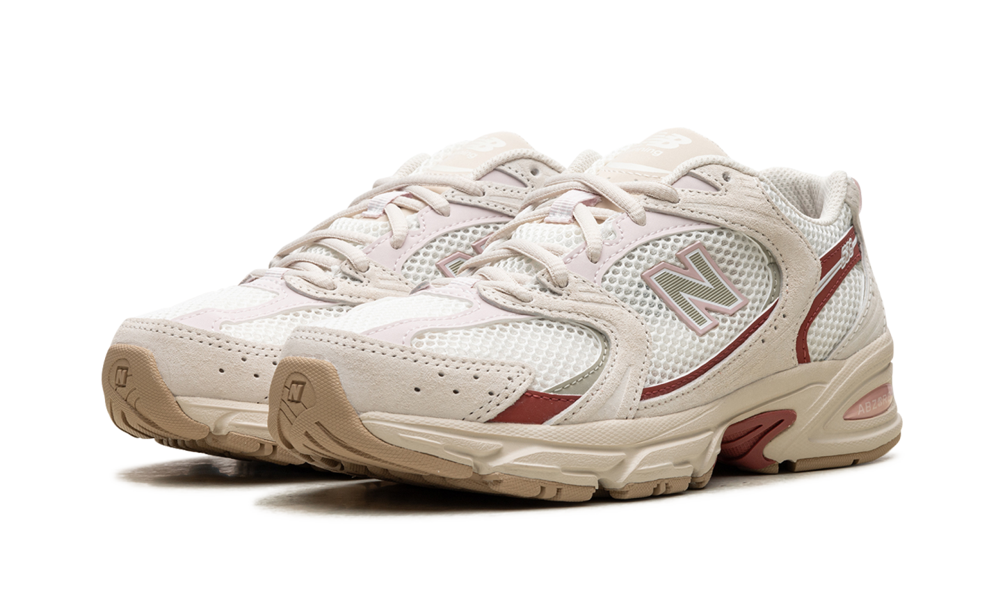 The New Balance 530 "Festivals" is a colorway of the retro running shoe with bright details inspired by the positive energy of music festivals. From a greater collection of “Festival” colorways by New Balance, the shoe at hand features an off-white mesh construction with tonal suede overlays accented in a brick red hue. An olive “N” logo outlined in pink appears on the lateral side, while a pink “530” logo appears on the lateral side of the quarter panel. The insole features a graphic of a sunset behind a silhouette of a line of palm trees. Release date: March 29, 2024