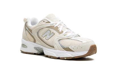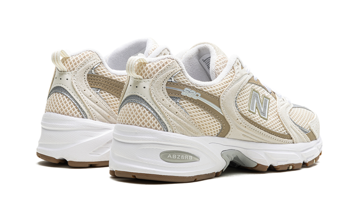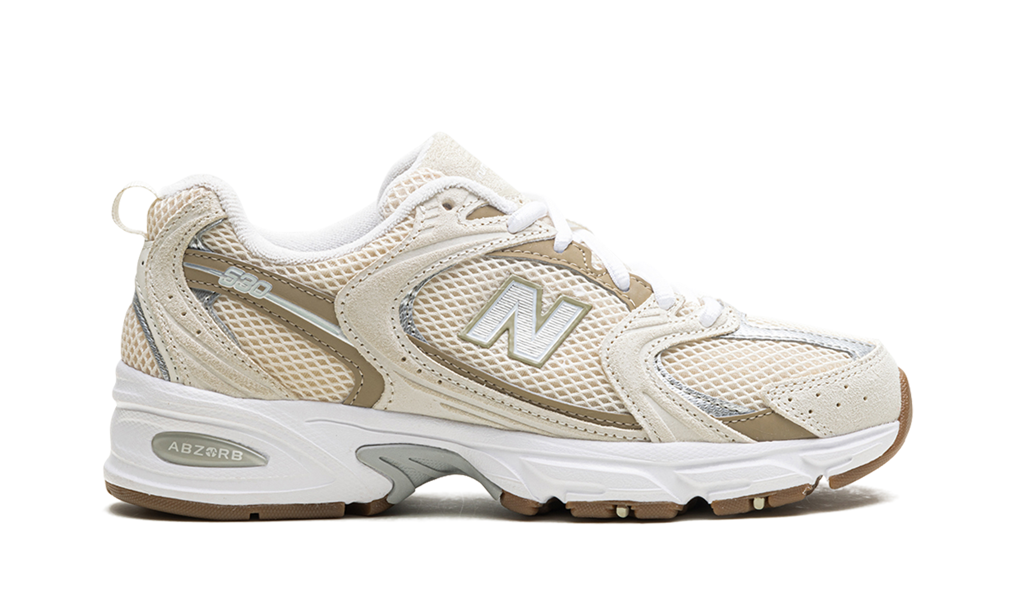 The New Balance 530 “Linen/Stoneware” is a colorway of the retro running shoe with a neutral-colored look. The shoe at hand features a cream-colored mesh construction with tonal suede overlays and brown leather overlays. A Sea Salt-colored “N” logo appears on the lateral side, while a grey “530” logo can be found on the lateral side of the quarter panel. A white midsole and brown outsole complete the look.