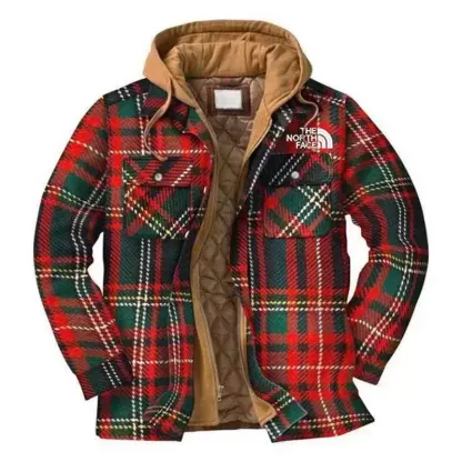 Mens Casual Fashion Plaid Winter Holiday Two-Piece Long Sleeve Coat