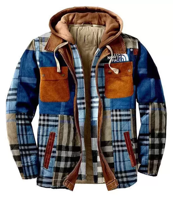 Multicolor Plaid Print Fashion Men's Hooded Coat