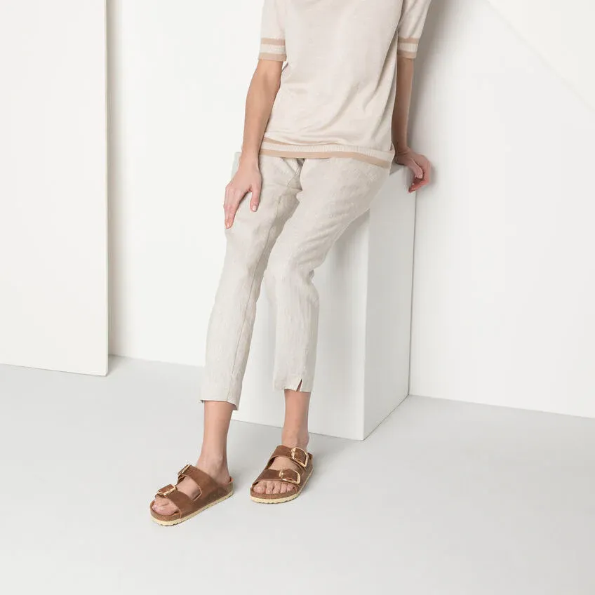 The legendary two-strap design from BIRKENSTOCK with amplified buckle accent - the Arizona Big Buckle. The Big Buckle version features a large, elegant buckle creating a bold yet minimalist design. Shown in oiled nubuck leather.